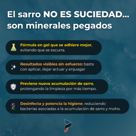 Con una capa fina basta para quitar el sarro. Rinde varias limpiezas de un baño promedio. Para sarro muy viejo, hacé 2 aplicaciones.