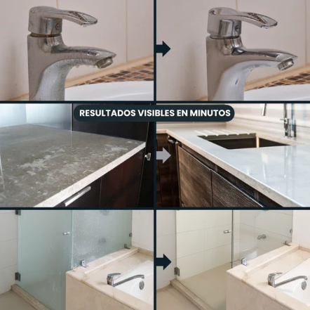 El Anti Sarro Kalbox actúa donde lo aplicás y devuelve el brillo a griferías, azulejos, mamparas y sanitarios. Fácil, rápido y sin esfuerzo.